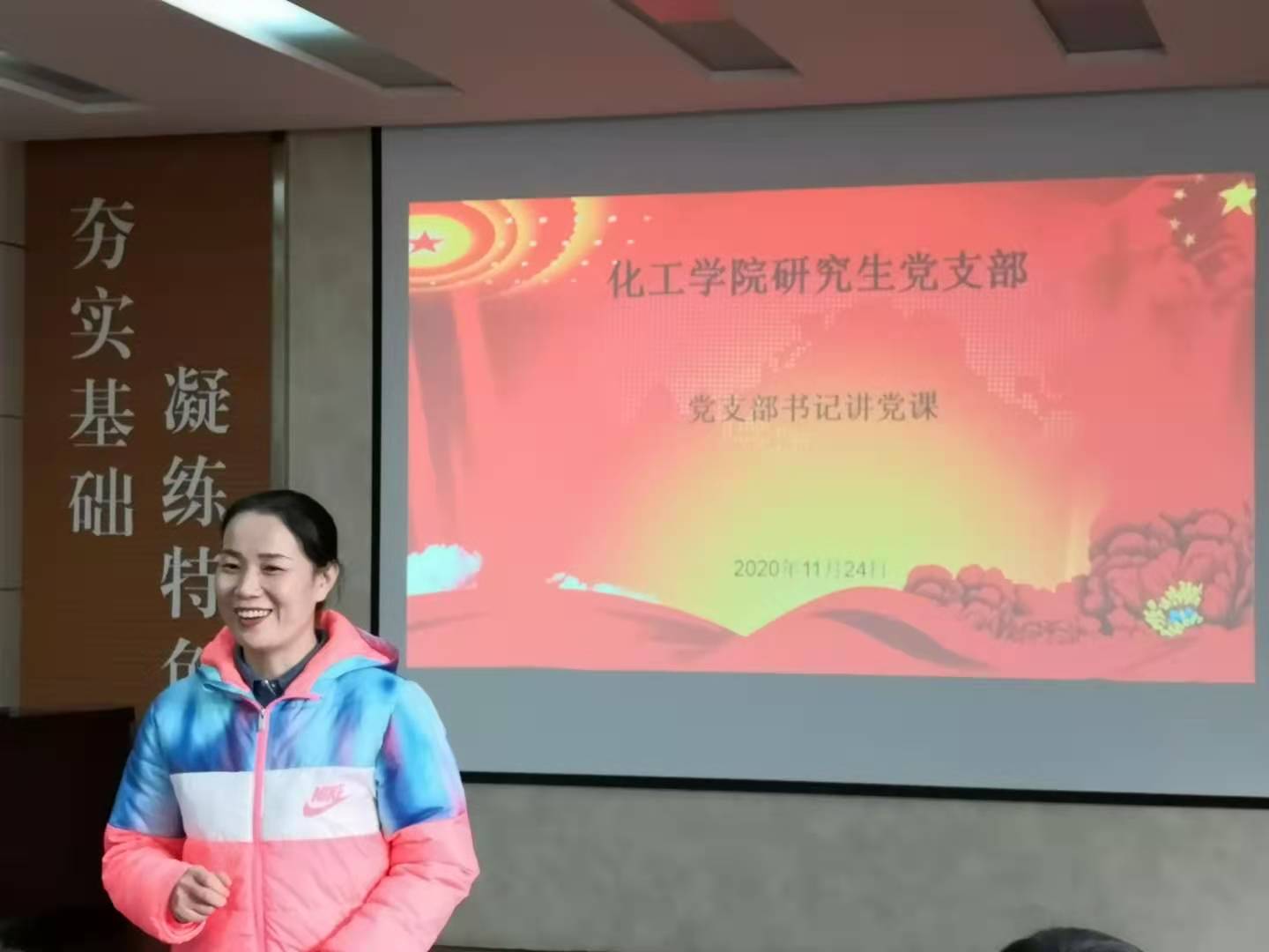 11月24日,澳门信誉最好十大平台研究生党支部书记易凡在J2-104为支部成员讲党课。党课的主要内容是“深刻理解党的十九届五中全会精神”,澳门信誉最好十大平台研究生党员和研究生入党积极分子到场聆听党课。课堂分为三个环节,在第一环节,易凡老师就公报的主要内容为大家做了概括介绍,并带领大家学习了党的十九届五中全会会议公报;第二环节中,她和支部成员一道观看了中央宣讲团知名专家对于全会精神的解读视频。随后,课堂进入第三环节,支部党员和入党积极分子就个人对于全会精神的理解展开热烈讨论。其中,支部委员郭彬同学说道:“五中全会精神激励我们明确目标,创新攻坚,作为新时代的研究生,我们要努力学习,为关键核心技术研发做出贡献,这样才能实现高质量发展。”入党积极分子代表王世伟也谈道:“按照五中全会的部署,把我们的青春力量转化为强大的发展动能,强国目标一定能实现。”党课进行了一个小时,在热烈的气氛中结束。