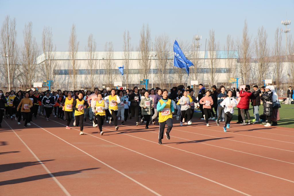 下午一点半运动员早早地来到操场东南角集合,开启了紧张充分的热身运动简短的幕式过后,越野赛正式开跑。男子组率先出发,裁判一声令下,他们如脱缰的野马,追随着领跑的红旗尽情驰骋队员们迈着矫健的步伐,在寒风中洒脱激情,在阳光下比拼耐力。十分钟后,伴随着加油呐喊声,女子组也加入征程。只见小黄衫强势领跑,展现了化工巾帼英雄的飒爽英姿。