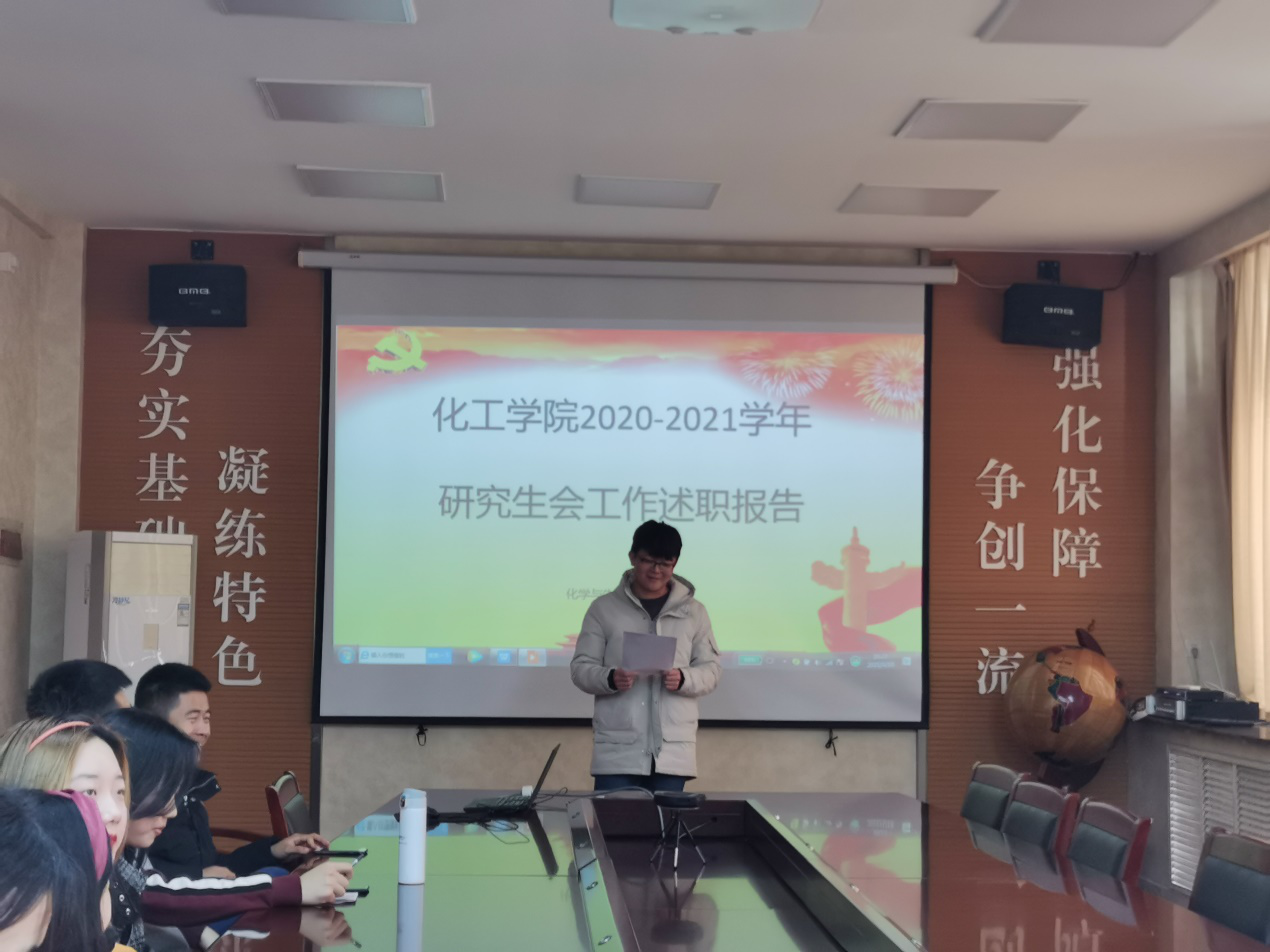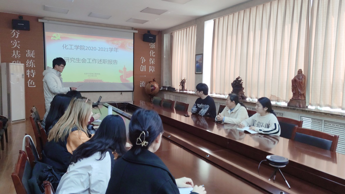 3月10日,化学与生物工程学院研究生会在J2四楼会议室召开2020-2021学年研究生会学生干部述职报告会。澳门信誉最好十大平台团委书记易凡,辅导员老师李玲玲、王大鹏和李淑出席此次报告会,院研究生会主席、各部门部长及研究生代表参与了本次会议。