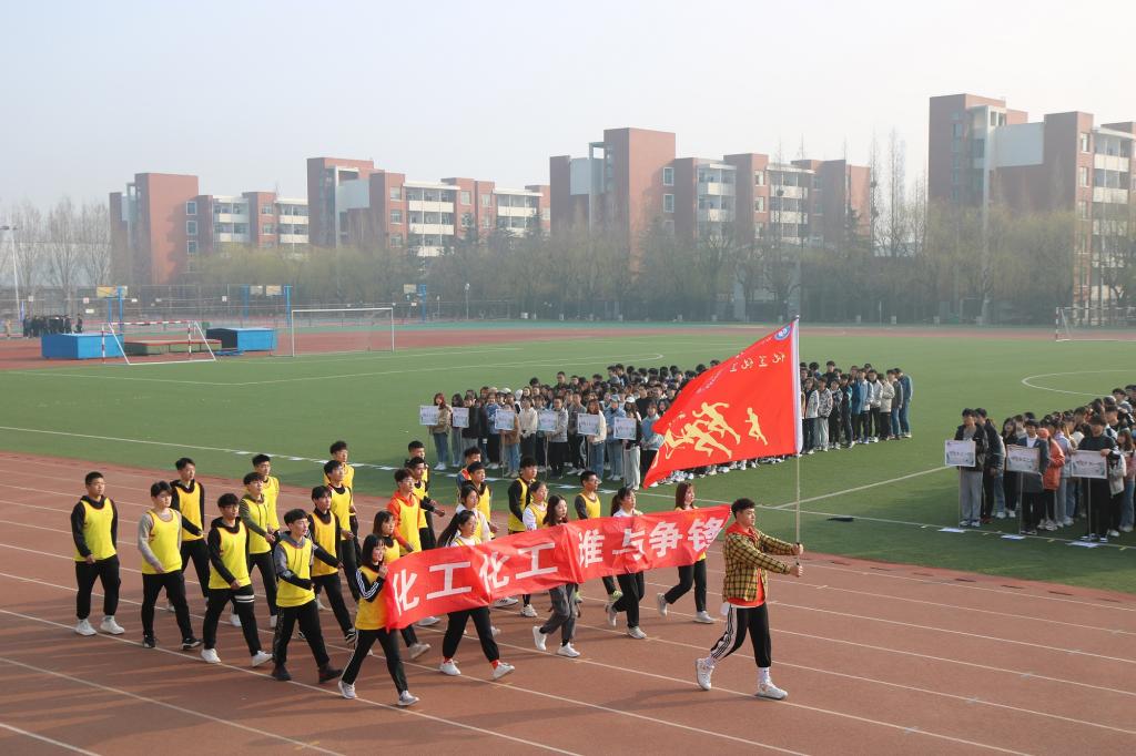 上午八点,伴随着激昂的进行曲,运动会拉开帷幕。国旗护卫队护送国旗入场,气氛庄严肃穆。随后,彩旗队、田径队代表队、乙组11支参赛队依次从主席台前走过,接受检阅。各方队精神抖擞,斗志昂扬,展现了化工学子的朝气与活力。