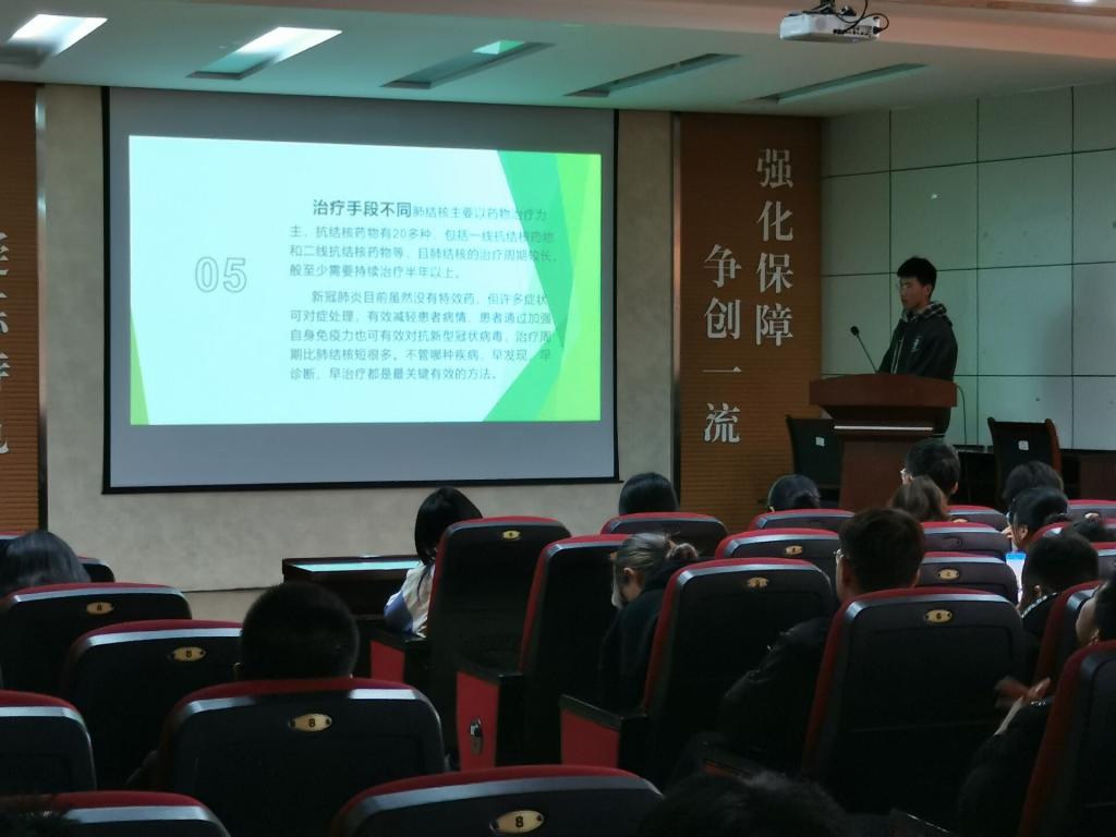 此次宣讲内容主要包括肺结核介绍、症状表现、传播途径、我国为防治肺结核做出的努力和成果、如何预防结核病等,提醒同学们平日里注重养成良好的个人卫生习惯,适当运动、均衡饮食,提升自身免疫力,以达到预防结核病的目的。宣讲人王弈权同学用通俗易懂的讲解,引导同学们积极参与到活动中,让在场人员学习了解了更多关于结核病防治的基本知识。活动最后,他向大家发出倡议:防治结核,从我做起。学校是一个大家庭,每一位同学都有义务和责任去维护这个大家庭的和谐稳定,当遇到患有结核病的同学,不应该歧视他们,而是应该给予他们更多的帮助与支持,携起手来,消除结核病,守护自由呼吸。
