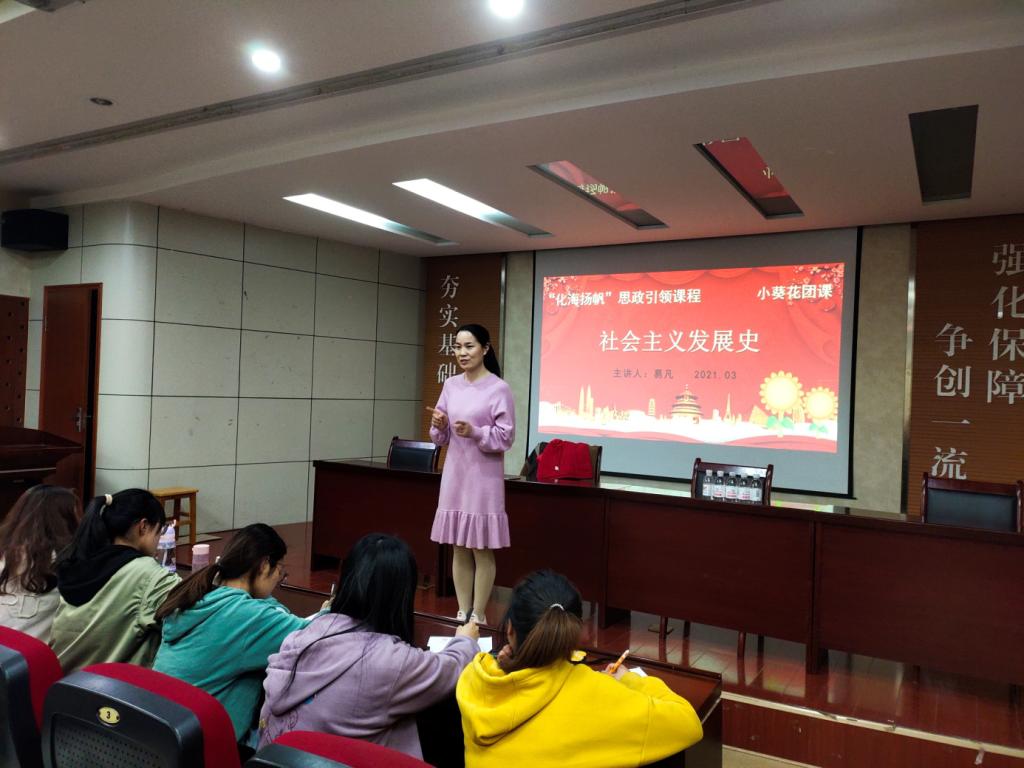 3月23日晚,澳门信誉最好十大平台“小葵花”系列团课第二讲开讲。本次课程仍由团委书记易凡担任主讲,各班级团支部书记参加了培训。此次团课的主要内容是社会主义发展史。首先,易凡老师用半个小时的时间,详细介绍了社会主义产生的根源以及发展的各个阶段。随后,沿着社会主义发展脉络,她带领各团支部书记回顾了中国特色社会主义理论发展的历史轨迹,并强调了广大团支部书记更应该在新时代的背景下,深入了解中国特色社会主义的发展历史和深刻内涵,做好社会主义史的理论传播者,在广大团员中间发挥思想引领的模范带头作用,以成长为中国特色社会主义事业合格的建设者和可靠的接班人。