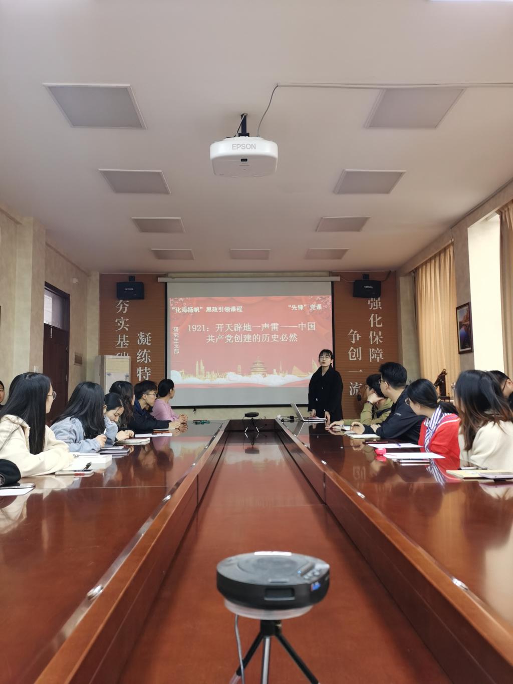 4月21日下午,澳门信誉最好十大平台研究生党支部“先锋”党课进行第三讲。王振冬同志担任主讲,党课的主题为“开天辟地一声雷——中国共产党创建的历史”。支部全体党员到场聆听。课堂上,王振冬从近代中国一系列革命的失败讲起,谈到受俄国十月革命和马克思主义传播的的启发,再到五四运动激励,促使以中国工人阶级和知识分子为代表的近代中国人民全面觉醒,寻求救亡图存的艰难历史,全面讲述了中国共产党成立的历史必然性。她说,中国共产党的成立,是开天辟地的大事变,中国革命的面貌、中华民族的面貌、中国社会的面貌,由此焕然一新。课程结束后,党支部书记易凡老师与各位同志交流学习心得。她强调,作为一名共产党员,我们要进一步传承和弘扬“红船精神”,坚定共产主义信仰,以永无止境的追求、善谋新篇的担当,继续干在实处、走在前列,为中国人民谋福利做贡献。