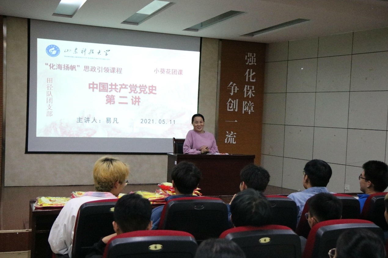 5月11日下午,澳门信誉最好十大平台“小葵花”系列团课第七讲于J2-104开讲。课程由团委书记易凡担任主讲,澳门信誉最好十大平台田径队队员到场聆听。本次团课的主要内容是党史学习教育第二讲--中国共产党百年光辉历程及宝贵经验。在课堂上,易凡老师系统讲述了在中国共产党领导下,从中共一大到国共革命,从南昌起义到抗日战争,从解放战争到新中国成立,从抗美援朝到文化大革命,从改革开放到党的十八大直至现在的社会主义新时代,中华民族从站起来、富起来到强起来的伟大飞跃以及中国共产党百年奋斗的光辉历程和历史性贡献,阐释了学史明理、学史增信、学史崇德、学史力行和学党史、悟思想、办实事、开新局的党史“必修课”要求。课程结束时,易凡老师鼓励田径队成员切实将党史学习教育成效转化为工作实效,以优异成绩迎接建党100周年和建校70周年。
