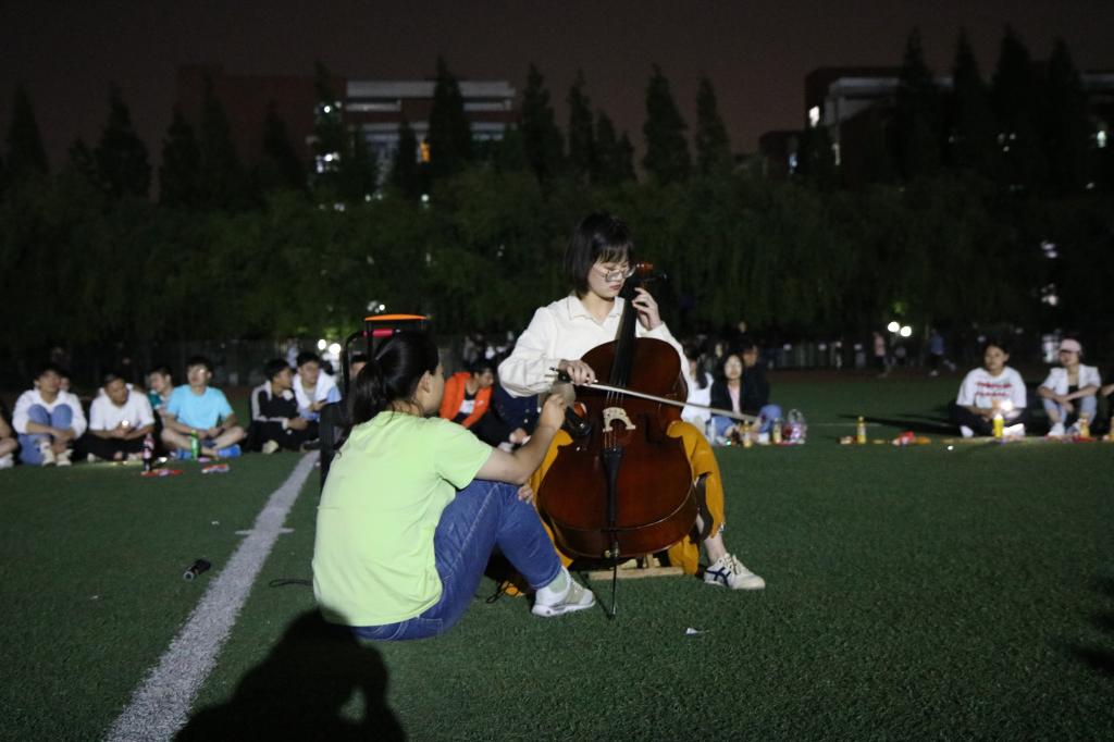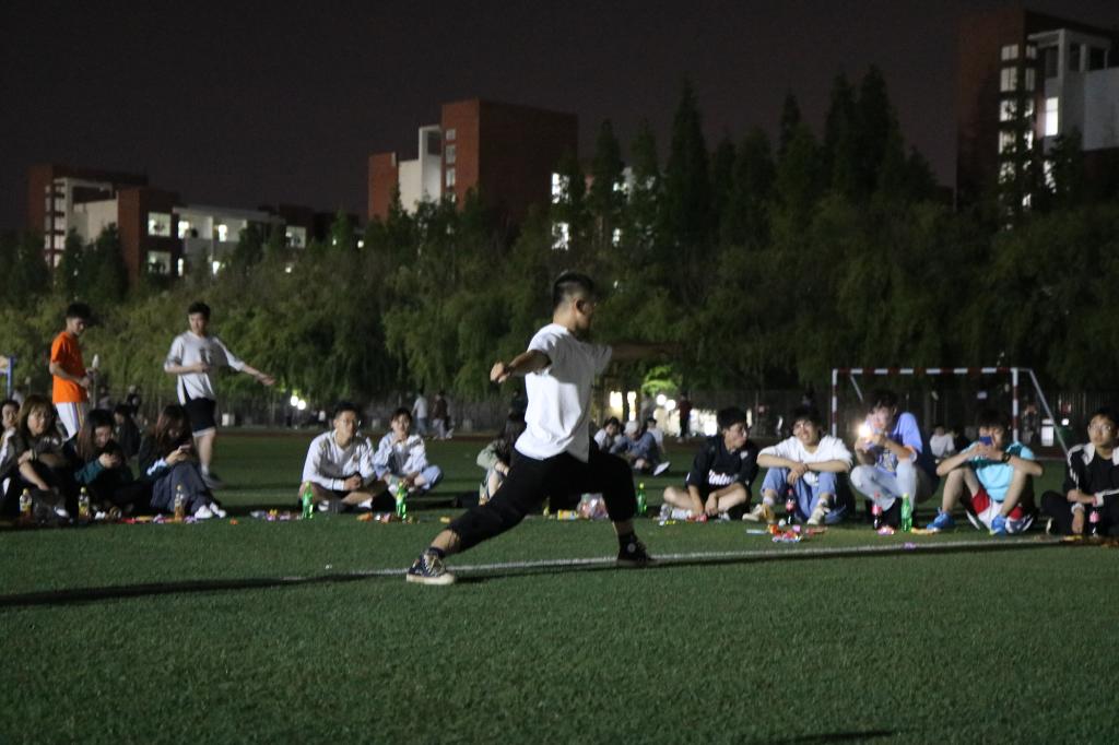 在之后的表演环节中,到场的老师给大家带来了重重惊喜:2020级辅导员满灏老师献唱《没有共产党就没有新中国》和《奔跑》,伴随着同学们的自发合唱和热烈掌声,让同学们不由得惊呼“今天看到了不一样的满老师,但都是一样的贴心满满”;2019级辅导员李玲玲老师为大家带来《打靶归来》和《最浪漫的事》,第一首的激昂动听歌声让同学们想起了战士打靶的场景,第二首更是唱出了全体辅导员的心声:“我能想到最浪漫的事,就是和你们一起慢慢变老……”;随后,易凡老师一首气势磅礴的《精忠报国》,让在场同学禁不住回想起近代百年的中国史,跟着她一起唱出了青年学生精忠报国的热情,并一起喊出了“化工化工谁与争锋”的运动会口号,掀起一个小高潮;最后,2018级辅导员徐华坤老师演唱《踏山河》,全体同学倾情跟唱并打开手机手电筒左右摇摆------一百多部手机的熠熠光芒与天上的闪烁星光遥相呼应,歌声、星光和掌声不仅让到场师生倍觉幸福美好,而且惊艳了风雨操场的所有行人。一位来自塔吉克斯坦的大二留学生被歌声感动驻足不愿离去,主动提出为大家唱首歌,主持人以中国人特有的热情友善把他请到圈中,他满含柔情地为大家演唱了一首英语歌曲《PERFECT》,给这场红歌会带来了异国情调和别样惊喜。