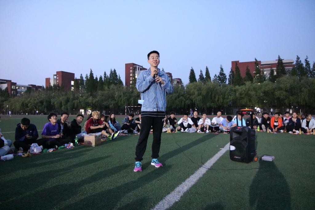夜幕初起,老师和同学们在谈笑之间围成了一个圈,把圆圈中间作为舞台。19:00,主题团日活动开始,主持人李彦钊首先发表了一段关于本次校运会再获双冠暨甲组十连冠乙组十年九冠的总结,他的讲述激情澎湃,引发同学们回忆起一周前的运动会,激发了大家的真情共鸣。随后,他请出了为运动会提供主力后勤保障服务的澳门信誉最好十大平台学生会体育部,并和在场队员一道,向体育部全体成员喊出自己的感谢:澳门信誉最好十大平台体育部,你们辛苦了!作为答谢,体育部全体成员合唱《多幸运》,感谢相遇,感恩相识,随着渐深的夜色拉开歌会的序幕。