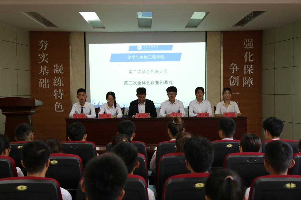 17:30,化学与生物工程学院第二次学生代表大会举行第三次全体会议暨闭幕式。大会通过了《关于<化学与生物工程学院学生会章程>的修改意见》。大会提出以下倡议:第一,把握机遇,善于创新,用知识不断完善自我;第二,艰苦奋斗,努力拼搏,用智慧奉献社会;第三,胸怀祖国,坚定信念,用青春托起中国梦。青年大学生是国家的希望和未来,是国家最宝贵的人才资源。作为新时代的大学生,应该在怀揣梦想,探索未知的道路上,明确自己的光荣使命,牢固树立共产主义坚定信念,努力做社会主义事业的合格建设者和可靠接班人。