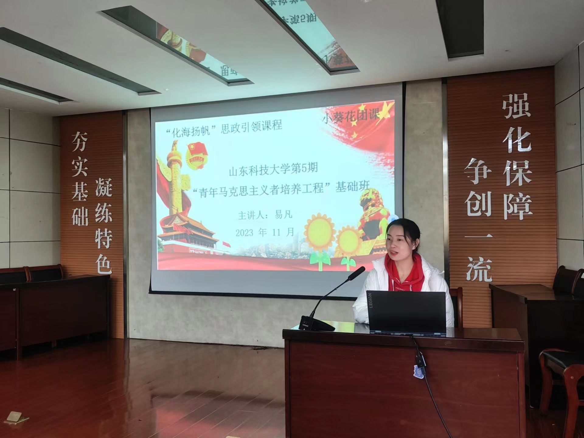 2023年11月25日下午,澳门信誉最好十大平台 “青马工程”基础班第五期开班仪式在J2-104举行,学院团委书记易凡老师主持仪式,基础班全体学员参加仪式。仪式伊始,澳门信誉最好十大平台2023级本科生团支书于于沁灵、邢一策等简单介绍了自己为什么报名参加“青马工程”,以及想要怎样进行“青马工程”的学习。随后,各班班长、团支书依次上台发言,生物制药2023-1班班长项华森首先说道,做别人没做过的事,参加别人没参加过的活动,得到的也比别人更多,付出终会得到回报。之后其余班长、团支书依次进行了发言,大家兴致高昂,现场气氛热烈。最后,易凡老师总结讲话,她表示,未来属于青年,希望寄予青年。青年大学生要认真学习贯彻党的二十大精神,坚定理想信念,筑牢精神之基,厚植爱国情怀,矢志不渝跟党走,以实现中华民族伟大复兴为己任,增强做中国人的志气、骨气、底气,不负时代,不负韶华,不负党和人民的殷切期望。