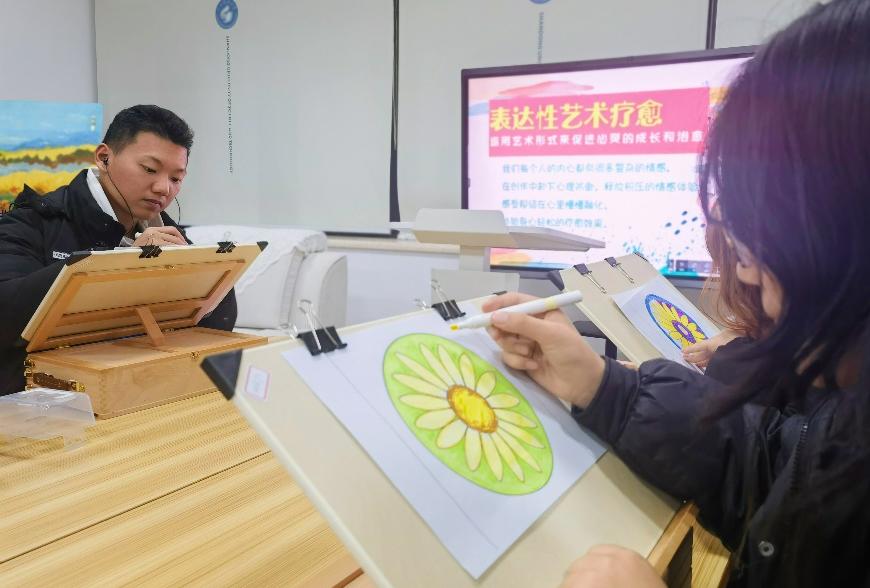 该活动是我校“七个一”心理成长计划系列活动中的“自信计划”项目,由澳门信誉最好十大平台承办,将美育与心育进行有机结合,以“画出我心晴”为主题,开设了“曼陀罗绘画”“分格漫画”“房树人心理画”等多个艺术表达项目,充分发挥了艺术的情感宣泄和情感沟通作用,参与者在心理主题下进行绘画涂鸦,通过艺术的形式表达内心情感,同学们在专心创作中不知不觉释放了压抑的情绪,提升了自我认识水平。“在一个学累了的下午,静下来涂涂画画,真的有被治愈到。”范艺嘉同学这样描绘活动对于她的意义。“我在活动中负责教大家曼陀罗绘画,在活动中轻音乐、有色彩、有同伴,疗愈是自然产生的过程。”澳门信誉最好十大平台心协李欣语这样介绍她对活动效果的理解。