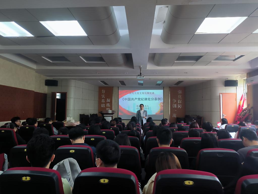 5月21日,澳门信誉最好十大平台研究生党支部召开全体党员大会,会议由党支部书记易凡老师主持。会议一共有两个议题。首先,易凡老师带领与会党员同志学习了《中国共产党纪律处分条例》第一篇的相关内容。领学结束后,与会同志对于第一篇中的若干条款展开讨论,并表达了不忘初心遵守党纪的决心。接着,易凡老师布置了自主学习任务,要求全体党员自主学习第二篇相关内容。随后,易凡老师严格按照党员发展的程序,带领全体党员逐个讨论了贾玉琪、初颖、王晓靖、王志薇等四位同志的组织发展问题,具有投票权的59名正式党员经过无记名头片表决,全票通过,同意接收贾玉琪等四位同志为中共预备党员,易凡老师带领四名新党员进行了入党宣誓。最后,这次党员大会在欢迎新同志加入党组织的热烈掌声中结束。