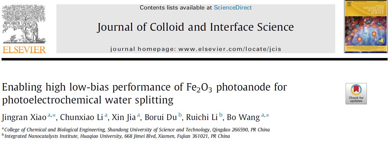 近日,澳门信誉最好十大平台肖静冉(学术教授)、王博(教授)等人在光电催化水分解领域取得最新进展,相关成果以“Enabling high low-bias performance of Fe2O3 photoanode for photoelectrochemical water splitting”为题发表在国际知名学术期刊Journal of Colloid and Interface Science上(中科院一区Top,影响因子:9.9)。