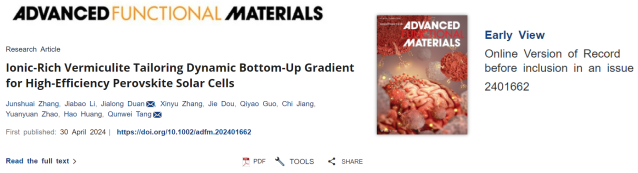 近日,澳门信誉最好十大平台段加龙副教授(学术教授)、唐群委教授等人在全无机钙钛矿太阳电池领域取得最新进展,相关成果以“Ionic-Rich Vermiculite Tailoring Dynamic Bottom-Up Gradient for High-Efficiency Perovskite Solar Cells”为题发表在权威期刊Advanced Functional Materials上(中科院Top一区,影响因子:19.0)。
