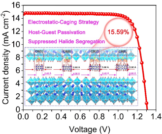 首次深入研究了全无机钙钛矿在光照/氧气暴露条件下的降解机理。与空气环境中水分加速的相偏析不同,O2接受光生电子生成超氧化物,将钙钛矿的Pb-I键氧化为PbO和I2,留下CsPbBr3相,而不是相偏析。此后,我们提出了一种生物因子“护肤”策略,在钙钛矿膜中加入丹参酮IIA,对钝化缺陷和清除形成的超氧化物物种发挥协同作用,显著提高了CsPbI2Br PSC的光稳定性和效率。相关成果以“Inhibited superoxide-induced halide oxidation with a bioactive factor for stabilized inorganic perovskite solar cells”为题发表在期刊SusMat上(中科院一区,影响因子:18.7),第一作者为硕士生段星星。