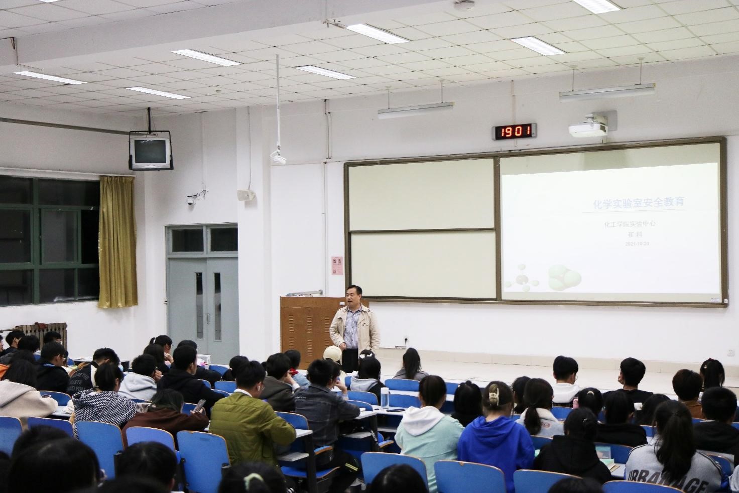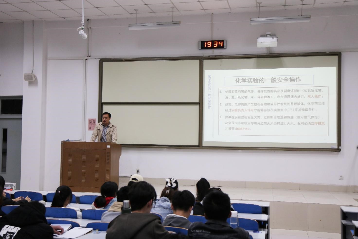 为进一步加强新生的实验室安全意识,有效防范实验室安全事故,提高实验室人员安全意识和处理突发问题的能力,确保校园安全稳定,10月28日晚,澳门信誉最好十大平台举办以化学实验室安全为主题的安全教育讲座,学院实验中心崔科老师担任主讲,全体2021级新生到场聆听。