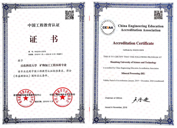 矿物加工工程专业于2019年通过了教育部高等教育教学评估中心组织的工程教育专业认证,成为我校继采矿工程、安全工程、测绘工程和土木工程之后第五个通过工程教育专业认证的专业。以工程教育专业认证为契机,矿物加工工程专业贯彻“以人为本”的评价理念,扎实推进教育教学改革,在学生、培养目标、毕业要求、持续改进、课程体系、师资队伍和支持条件7个方面的建立了完善的评价与反馈机制,并通过毕业生、用人单位、第三方社会机构为支撑的毕业生跟踪反馈机制,重点对毕业生从业情况、事业发展状况、岗位薪酬、毕业生工作能力以及对人才培养的满意度进行定期评价,综合反馈学生的社会适应性、竞争性等专业能力和综合素质。