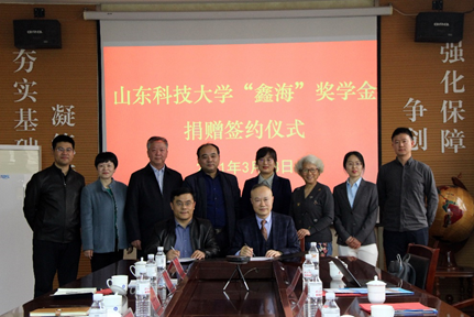 3月18日,山东科技大学“鑫海”奖学金捐赠签约仪式在澳门信誉最好十大平台举行。合作发展处副处长王荣超、鑫海公司董事长张云龙、澳门信誉最好十大平台党委书记窦存增、院长吕宪俊、副书记田静、副院长李琳等出席签约仪式。仪式由窦存增主持。